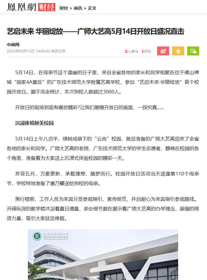 凤凰网:艺启未来 华丽绽放——广师大艺高5月14日开放日盛况直击