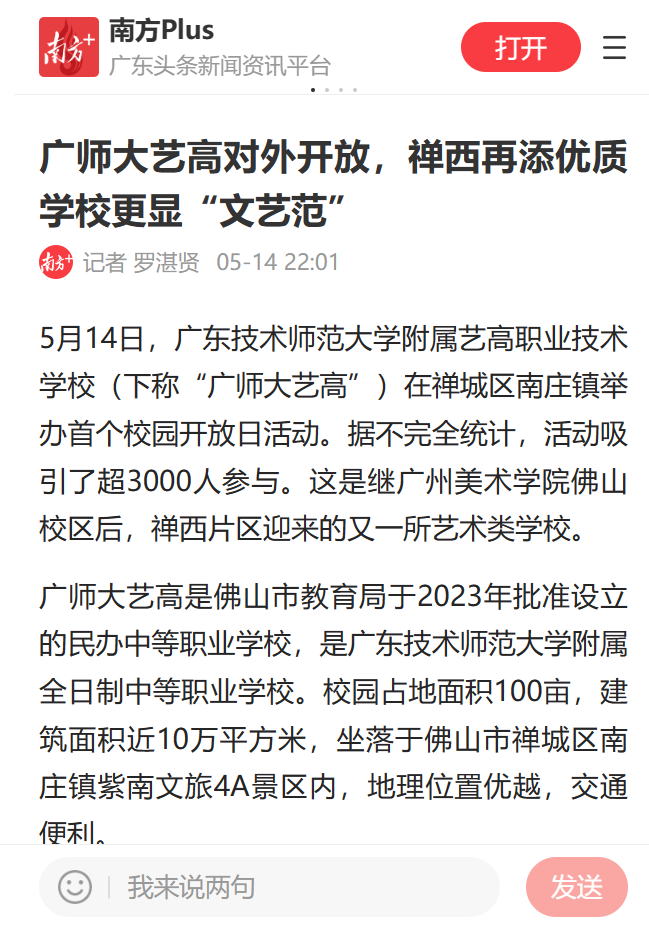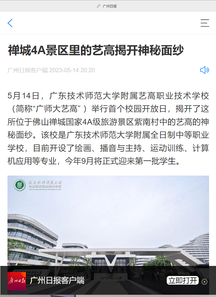 南方+:广师大艺高对外开放,禅西再添优质学校更显“文艺范”